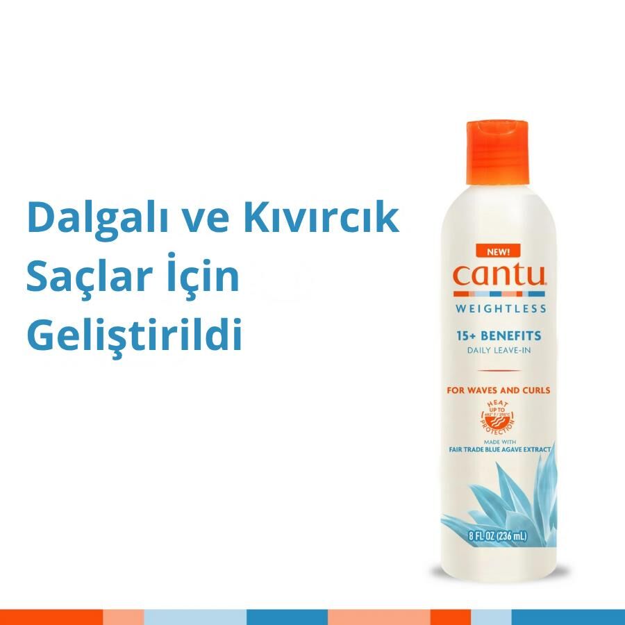 Gelince Haber VerCantu Weightless 15+ Etkili Günlük Durulanmayan Saç Bakım Kremi, dalgalı ve kıvırcık saçlara özel geliştirilmiş hafif formülüyle saça 15’ten fazla fayda sunar. Fair Trade Blue Agave (Mavi Agave) özüyle zenginleştirilmiş içeriği, saçı nemlendirirken aynı zamanda kırılma, kabarma ve elektriklenmeye karşı korur.
